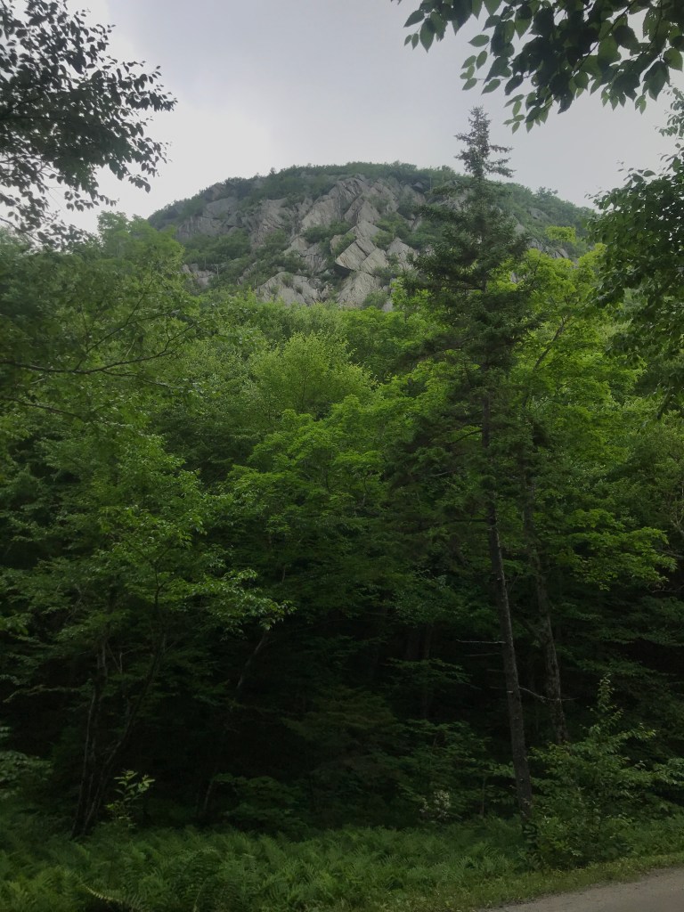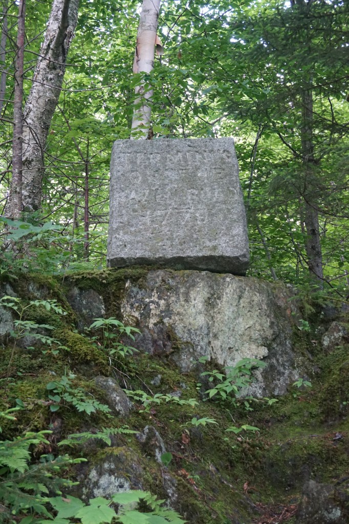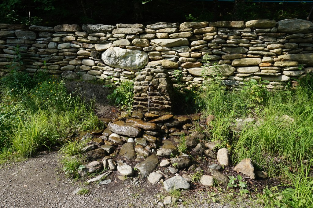 So Brad and I met up in Montgomery that morning at our friends Jake and Carrie’s place. They were camping at Green River Reservoir, but agreed to let us use their driveway…and pond, but more on that later. Feeling the humididy already, we quickly got ready and headed out. Leaving their house we used Amidon Road as a cut-over to Hazen’s Notch Road (AKA VT Route 58, the only state route I know of that’s dirt for a significant portion). Hazen’s Notch Road rises quickly out of Montgomery Center and with its steep pitches and dirt surface it’s not maintained during the winter. After a hearty climb, we reached the top. Someone had recently rebuilt a retaining wall that contained a spring. There was also an old stone tablet which reads “Terminus of the Hazen Road, 1779” in reference to the Bayley-Hazen Military Road which was built during the Revolutionary War. We enjoyed the views of the sheer walls of the notch and I at least was thankful for the break from the climb.