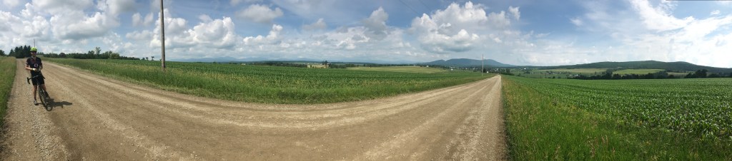 As we got further north, we began to have view up into Canada. These are the first border towns I’ve done on this project and it’s always fun when you can look into another country. There’s great riding up there in the Eastern Townships, but sadly that won’t be able to happen for a while. The views were nice for now though. This section included my two favorite roads of the ride: Niles Road (and later Bergeron Road, where the introductory picture was taken). From Niles Road you can see a couple of peaks that are just over the border (Mont Bear and Mont Hawk). They form a frame that Owl’s Head eventually filled as we moved west.