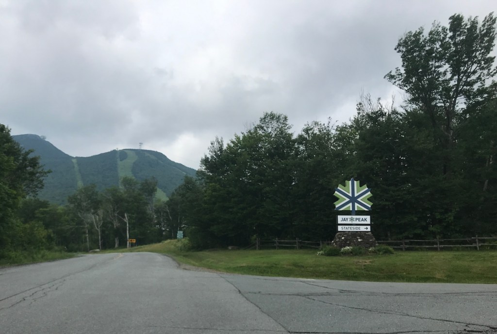 With the second big climb of the day looming we made a pit stop at the Jay Country store. We refilled water bottles, took a short break and prepared to climb. We both joked about using our mindfulness skills on the climb and just working on “noticing” things. But once we got into the climb, I really did need something to distract me. What it turned out being was the some of the music from Jurassic Park. It’s such solid John Williams fanfare-type stuff it really powered me on the up. Riding past Jay Peak was so great. Other than for my friends Chris and Christine’s wedding, I’ve barely been there in the summer. They now have a ton more stuff to do in the “off-season”, including a golf course and water park. On the final steep climb up to the top of the climb, I distracted myself with looking up into the glades and thinking about skiing deep deep powder. We finally made it to the top and were rewarded with a bombing run of a descent back to Jake and Carrie’s.