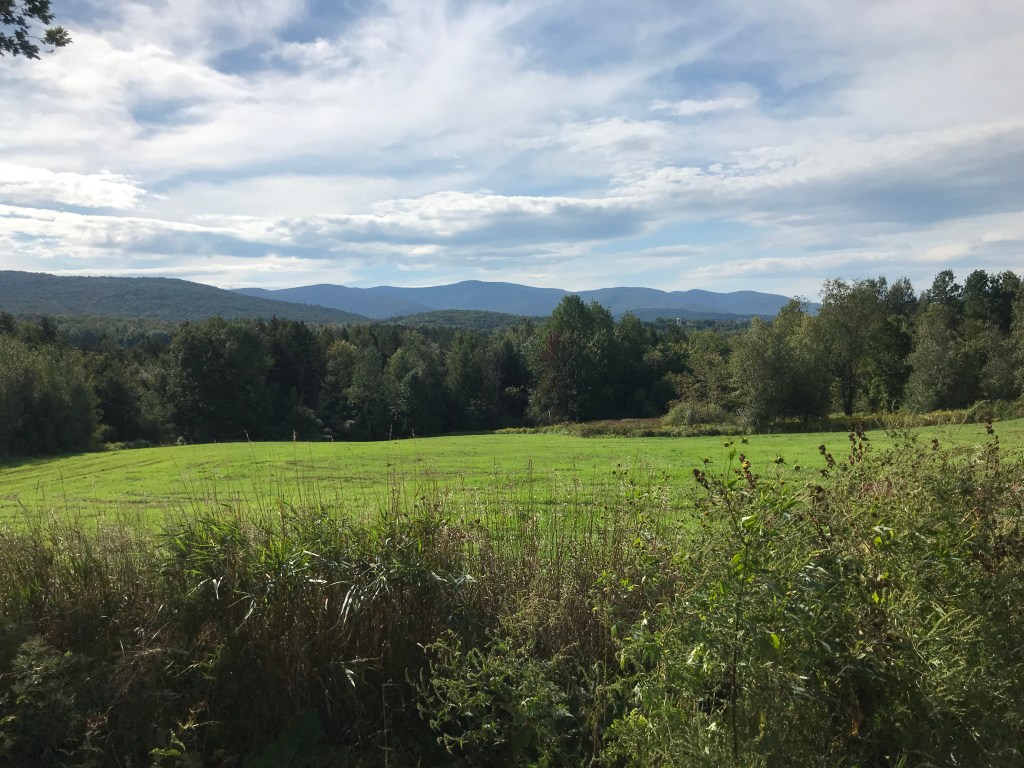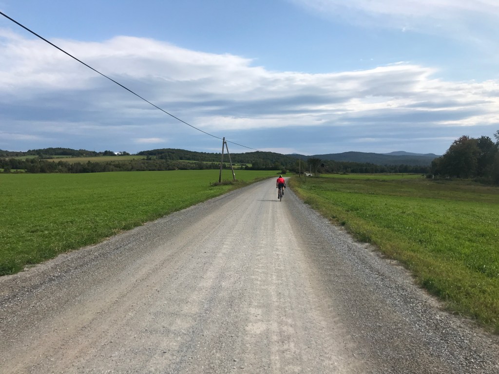 At our second gas station stop of the day, I immediately spotted a kid’s lemonade stand across the street. Content to pay for any kind of sugar water, I figured I may as well support these kiddos. It turns out is was even fresh squeezed! So I had them fill a bottle of mine and headed into the Valero to restock with a cliff bar and some chips. I went with salt and vinegar against Brad’s advice of barbecue and I almost immediately regretted it. The salt was too much and as Brad said: you need the sweet to balance it out. But I got to the bottom of the bag and soon we were off again, back down our rail trail spur to continue. Things continued to stay pretty rural through this stretch, and the wind really became more of a factor. Without the shelter of small “dales” as I call them, it whipped around us. It also wasn’t super consistent. Our direction changed but we always seems to have some version of a head wind. It really grinds on you, and I admit to slumping a bit here. Despite more views (of which I didn’t take too many pictures) and more history (of which I didn’t get too excited at the time) I just had to get into grind-it-out mode. Looking back it was some solid Type II Fun. Plus there actually was some cool history: was passed right near the birthplace of Chester A. Arthur one of two Presidents to come out of the Green Mountain State. We also saw a bunch of quilt patterns on barns. We’d seen them all day, but they finally registered in my brain here. It turns out there’s a “Barn Quilt Trail” throughout Franklin County. It’s a subtle way to bring a continuity to a community. We continued trading off lead to try to pull one another down the road and eventually reached Fairfield. This was an inflection point. I’d seen on Brad’s route that we could turn left here and take the paved, main road of Route 36 back to our starting point. However, Brad was very excited about this last section and with some gentle peer pressure, encouragement and a rest taking shelter in a baseball dugout, I was convinced to go on. I was so glad to do so too. It ended up being an amazing stretch of road and out of the wind too! Route 36 would have been miserable: busy and blustery. The route we took had us head up Ridge Road and up to some freshly hayed fields. It would be a prime spot to check out come foliage season. We even chatted with a guy outside his house who had an ATV and clearly knows the Class 4 in the area. With confirmation that our route connected and that there was more to explore there later, we crossed over to Romar Road and bombed down to East Fairfield. We had done 73 miles and I’d done my longest single ride ever!