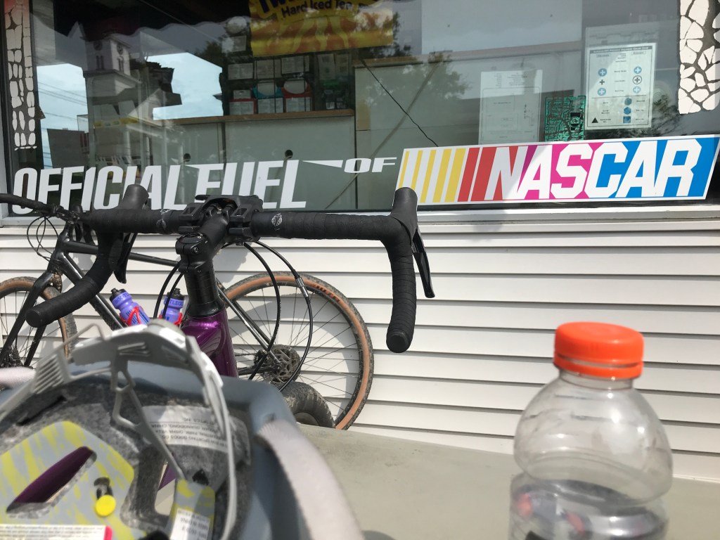 After our refuel, we crossed the Missisquoi River through downtown Richford. We passed under their welcome sign and along the town’s streets that hold abandoned storefronts, but also architectural gems and untapped potential. One such gem is the Grey Gables Mansion Inn. Built between 1890-1892 for successful entrepreneur Sheldon Borigh, it is listed on the National Register of Historic Places. It looks like something out of a children’s book and is a true show-stopper, just screaming for your attention as you pass by. After getting over the shock of the house, we headed up Pinnacle Road. Normally, we’d have loved to pop into Canada which you can easily do on this road, and I did a few years ago as part of an overnight tour with some friends. However, international relations being what they are, we stopped short of the border at the intersection with Berry Road, drank in the view and continued west. It was some classic back road conditions and the climbs and descents were all moderate. Per usual, there were punctuation marks of views, including a stunning stretch of Skunk Hollow Road that gave sweeping views to the south in which you could see all the way down to Mount Mansfield. We tackled a few more paved and Class 4 roads, eventually calling an audible to join a partially constructed portion of the Lamoille Valley Rail Trail after climbing out of East Highgate. Fun side note: the Governor just announced that this rail trail will be fully funded and hopefully completed by the end of 2022. Once done, you’ll be able to ride the 93 miles between Swanton and St. Johnsbury all on trail! This small section carried us into Sheldon Junction where the Lamoille and Missisquoi rail trails come together. It’s also where we began to get hungry again. We stopped to check out Papa Noel’s which it turns out is mainly a pizza joint and creemee stand. So we decided to detour over to Sheldon Springs for a proper gas station stop.