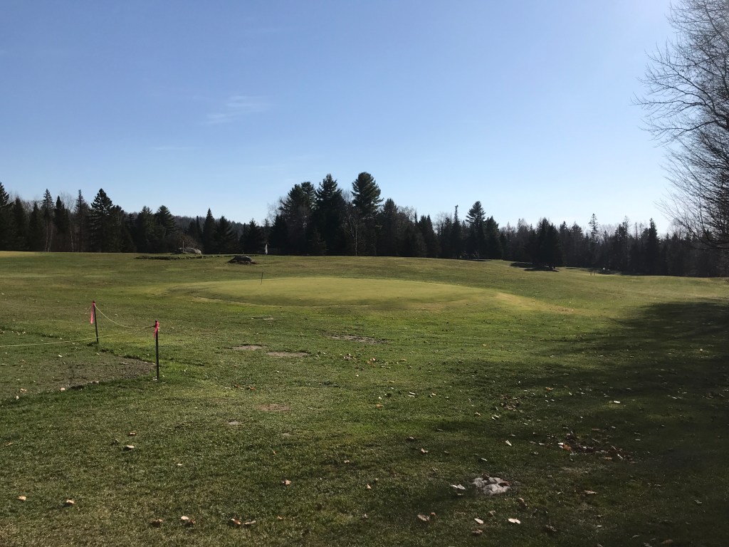 We took a left on the buzzing, busy road, and were headed to Plainfield. We quickly reached Goddard College, a school now mainly consisting of low-residency programs, which sits on the outskirts of town. We passed the local library and the Opera House, taking a right on Main Street to speed by the local Co-Op and Positive Pie Pizza. We were then given a break from traffic by starting a rail-trail that begins in Plainfield. It follows an old railroad bed that was laid out to accommodate the Montpelier and Wells River Railroad. The railroad was developed in the early 1870’s and offered both passenger service and freight including dairy, poultry, logging, wood products and granite. The line was in service until 1957 and you can see a ton of pictures thanks to the Plainfield Historical Society. We very much enjoyed the double track which smooth overall, and punctuated by only sporadic mud and the occasional abandoned bus. We took a wrong turn at one point where the old rail bed had become someone’s driveway and the trail diverts around their home. But we were soon back on the trail and worked our way down into Marshfield where we took a break. I had hoped to pop into the Rainbow Sweets Bakery, a spot I’ve driven by many times, but never stopped. Sadly, they’ve closed (temporarily I hope) due to coronavirus. So our snacks were not nearly as exciting as they could have been, but they fueled us for the climb up towards Cabot. The town of Cabot is of course associated with the delicious cheese manufacturer which is the standard bearer in a state known for its cheddar. It began in the town when a collective of 94 farmers pooled their resources (and milk) to produce cheese. They’ve grown from there to today topping $350 million in sales per year and they are still organized as a co-op (and a B Corporation to boot)! We didn’t actually make it into the village of Cabot. Instead, we got to see “Lower Cabot” after dipping down Ducharme Road to Route 215, only to climb back up the impressively steep Blodgett Road. It pushes over 21% grade at points according to my GPS. That’s pretty darn steep. Oh by the way, I bought a bike computer. It’s a Wahoo Elemnt Bolt I bough off my friend Rachel. It’s been great for navigating and geeking out on stats both on ride and off. Anyway, we enjoyed the Class 3.5 terrain of Blodgett (more so once it leveled out). Then we popped onto East Hill Road and stopped next to the 9-hole Woodbury Golf Course to eat a bit of lunch.