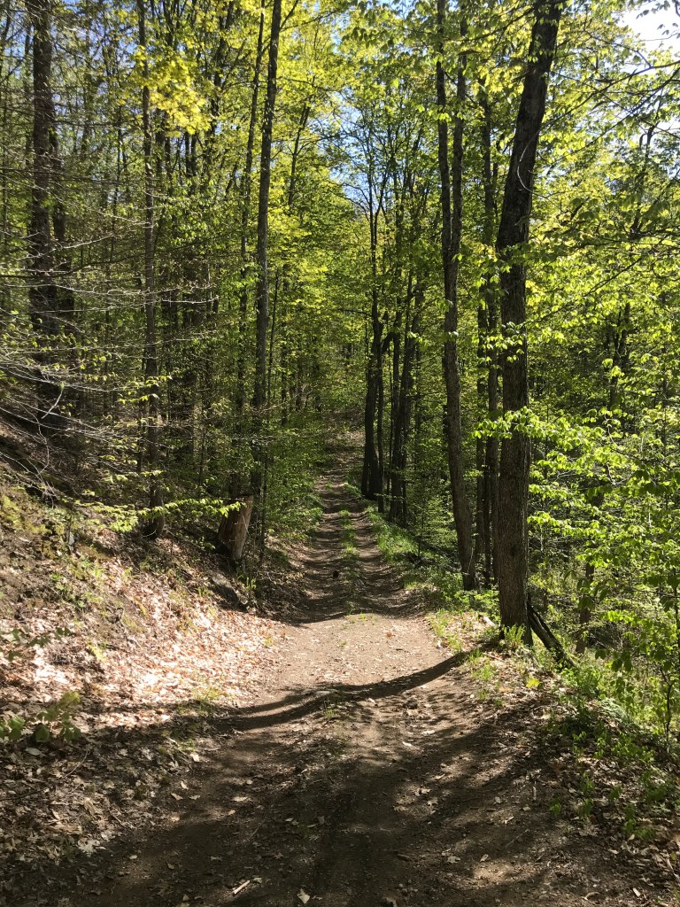 I began to curve north again and was soon on Rowe Hill Road which is a solid section of Class 4. Unfortunately I was climbing for most of it, but it was in good shape and not overly challenging. I then headed up Queen Victoria Road which is technically a class 3 and got some drainage work done recently so there it was very passable. Not quite sure why it’s named after the long reigning British monarch, but since she was on the throne from 1837 to 1901, there’s a solid chance the road was put during that time. Maybe someone was just a fan? Who knows. I then went through Jenneville which is a tiny hamlet of Hartland (it’s basically just a couple of houses and a cemetery). But there are lots of different roads and trails that all seem to converge there, so however it formed, it must have been the center of attention for some reason. I then hit up yet another stretch of Class 4 road, this one being by far the longest and best of the day. The Cady Brook Trail runs parallel to its namesake and has the most gorgeous little pockets and riffles of water. There are hemlock groves, mossy cliffs and the road surface is pretty much impeccable. I mean you could ride a road bike along some of it. The trails is part of an extensive system of over 400 miles over 117 square miles of bridle paths and other rights of way maintained by The Green Mountain Horse Association. Again I was climbing, but the grade was gentle enough that I wasn’t struggling and could really enjoy the scenery. I was disappointed to get to a gate and back onto a road by the end. At the trailhead someone had installed a pretty ingenious cement trough that caught stream water for the horses. From there I dropped down into South Woodstock and made a beeline for the “Country Store“, but as fate would have it I missed their sandwich counter by 20 minutes. More than a little despondent, I bought a lemonade, pounded it and pushed on. Quick side note: the Country store has one of my favorite Google Street View shots of all time. I mean what where those kids doing? Where are their shirts and shoes? How are the taller kid’s shorts only wet on one leg? And how psyched were they to see the Google car? Anyway, I went up the steep Randall Road to a quick little hike-a-bike/Class 4 section then north and down all the way back into Woodstock. At this point I was ravenous, so I changed as fast as I could and headed straight to Worthy Kitchen and bought a take out burger, and inhaled it. I certainly need to do a bit better in my food back-up planning as well as hydration, but overall it was a fantastic ride on a perfect day!