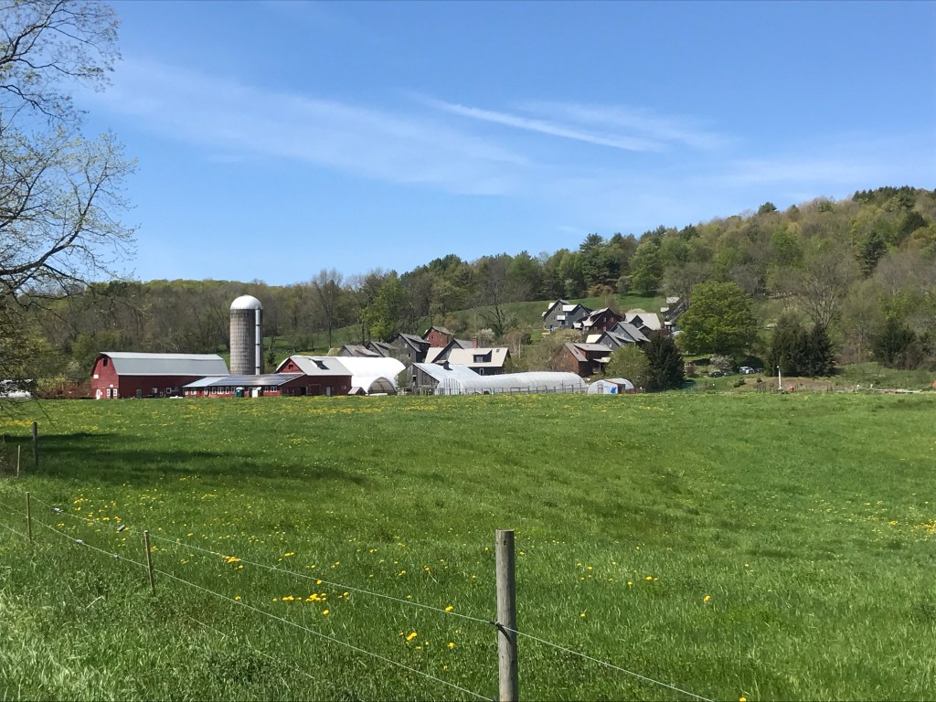 I backtracked then head south again, first on a more trafficked paved road, but I eventually took a right onto Draper Road and the quiet dirt lanes I was hoping for. Here began the first of a few saw blade-shaped elevation profiles of the ride. And while steep downs are fun, the ups get a bit taxing. But there were views and plenty of lovely houses to look at. This area seems to have so many nicer homes that have been built or fixed up. There were handful of “rougher” looking places, but I really got the impression that even on these back roads that in other towns may be had some homes where people appeared to be just eking it out, this part of Vermont is home to a much higher percentage of people who are doing significantly better than that. I eventually made my way across the Hartland town line and zipped past a massive complex of buildings that it turns out is a farm and co-housing venture. They are 23 households strong and the farm produces and sells their own cheese. It looks like a really neat community. Just south of there is Hartland Four Corners, a small village that seems to mainly be known for the Skunk Hollow Tavern.
