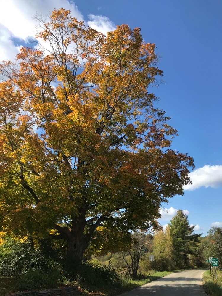 As I mentioned, the weather has been crazily warm. I’d normally describe it as Indian Summer, but we haven’t even had a frost yet, so I wouldn’t say it even counts! The leaves were really starting to peak so I wanted to get as much time in the saddle as possible. Plus, I didn’t want to miss the precise moment of peak foliage. I began from the house, so I technically rode in Jericho, but I’d already checked that town off way back on Ride 3. The first half of this ride was also interesting because we were right in some of my favorite local riding zones, so I was very familiar with the roads. The first part on Packard Road, cutting through the Town Forest and onto Old Pump Road was especially familiar. I also had a really tough time riding past the best creemee in town at Palmer Lane Maple. We’re spoiled with options in town and when we drive the 4 miles to get there, we have to pass two other places that serve creemees. But this one is hands down the best. Anyway, after a short stretch I was into Essex, the first officially new town of the ride. Essex is an interesting mix of rural and suburban. There is a village of Essex Junction that really blew up in the late 50s with the arrival of IBM and its chip plant. In fact the differences have become so divisive that there’s a good chance the towns will split in two and I may need to rename my project Dirt 252. Anyway, I crossed into Essex on Old Pump and took a right onto Sleepy Hollow Road. Google seems to think that this road connects all the way through, but it doesn’t. At least not where Google has it going. There are, however, some trails that work their way through to the north. I needed a few tries to find them, but I finally did on a recent ride. I continued down and took a right on the main road connecting Essex and Westford, Route 128. I normally would be taking Osgood Hill Road, but seeing as how this was a 251 ride, I wanted to get a few new roads in. So I opted to continue north and take Pettingill Road. I crossed over the Browns River and began climbing, soon coming to the Westford line. Along the way, I passed three sugarhouses and some immensely beautiful foliage. I almost feel like I need to apologize for the amount of changing leaf photos that will be coming in this and the next ride wrap up. But anyway, it was absolutely gorgeous and I even managed to cross paths with a small flock of turkeys. Now onto the first of many sets of gratuitous foliage shots…