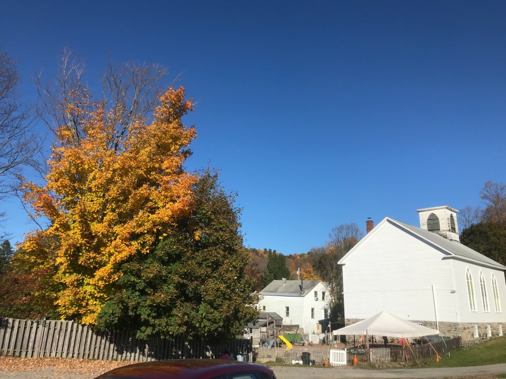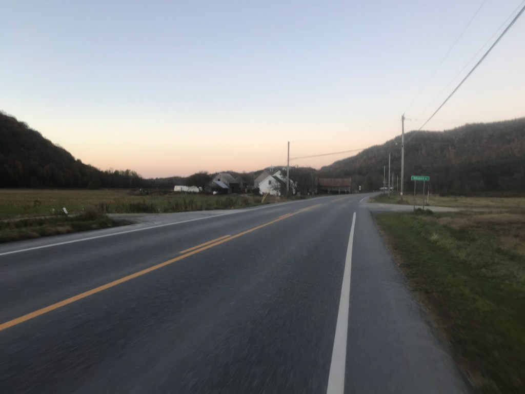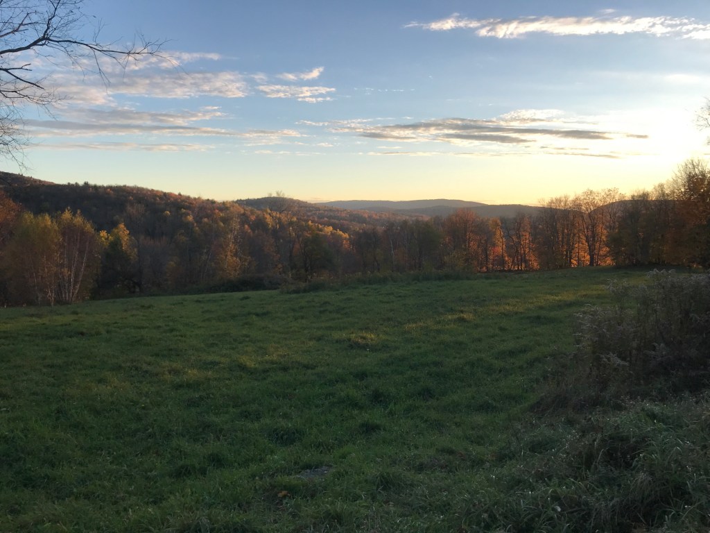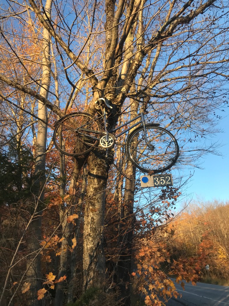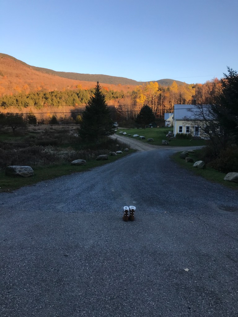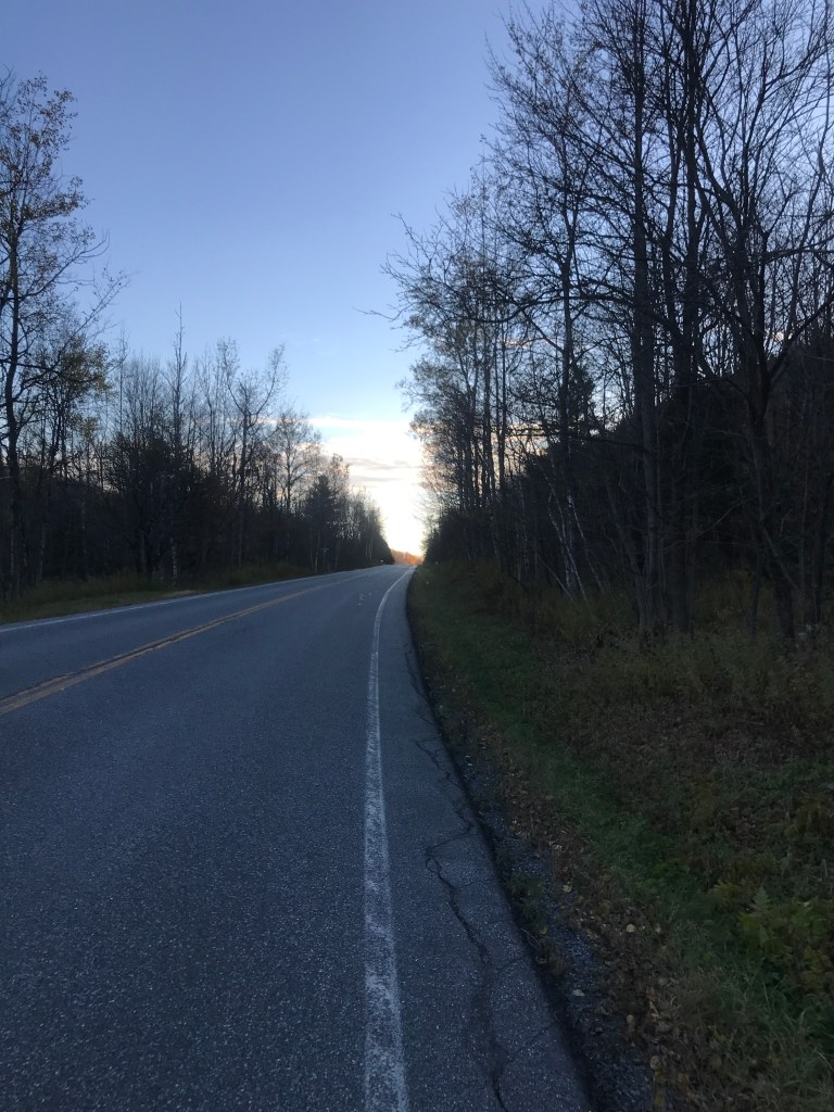 From this point in the ride, I was going to trend down and despite the fact that I kept thinking I’d seen the last of the sun, I repeatedly turned a corner or topped a rise and saw it again. Right before I finished the small climb, I saw a pair of Ugg-type boots sitting at the top of a driveway. Maybe they were being given away, but they were right in the middle of the driveway. Strange. And no, they weren’t my size. From the top of the Baby Gap, I made a brief detour through Jerusalem. The tiny settlement is part of Starksboro, and I couldn’t find any definitive information on where the name came from. A cursory look at the graves in the cemetery doesn’t reveal any jewish names or burials, so I don’t think it’s directly religious. There is a small store and a lovely old schoolhouse that was converted into a community center a few years ago. They had a Little Free Pantry that was just installed as well. I love those things. I took the short dirt road around and back to Route 17, then turned right onto Lafayette Road to connect up to Robert Young road. I need to be sure to tell my friend Bobby Young about that road…Anyway, the sun was truly setting and that’s when I snapped the photo at the top of this post. I’m pretty proud of that one! It was around this point that I crossed into Bristol. I feel a bit bad giving Bristol short shrift, but there honestly aren’t too many good dirt roads to ride in the town. There’s Hardscrabble Road (great name) and also Notch Road that gets you up into the Green Mountain National Forest and the lovely roads of Lincoln and Ripton (Ride 12), but it was hard to loop into a ride. I eventually got back into Starksboro and I had an anticlimactic ride along Route 116 to get back to the village. Before getting there though, I had another memory of years ago with Maddie: we passed the Common Ground Center. It’s a camp, retreat center and sometimes wedding venue. We stopped by to check it out during a bitterly cold winter day on which there also wasn’t any power. Though we didn’t get married there, it’s a beautiful place and they do some great work. I pushed through the impending darkness, happy to have my rear light and my bright front light (the same one I ski with). After a two and a half hours I was done. I hope to squeeze in at least one more, but we shall see. I may not continue with 251 rides until 2022. I’m close to ⅔ of the way done and it would be great to get things wrapped up next year. We shall see!