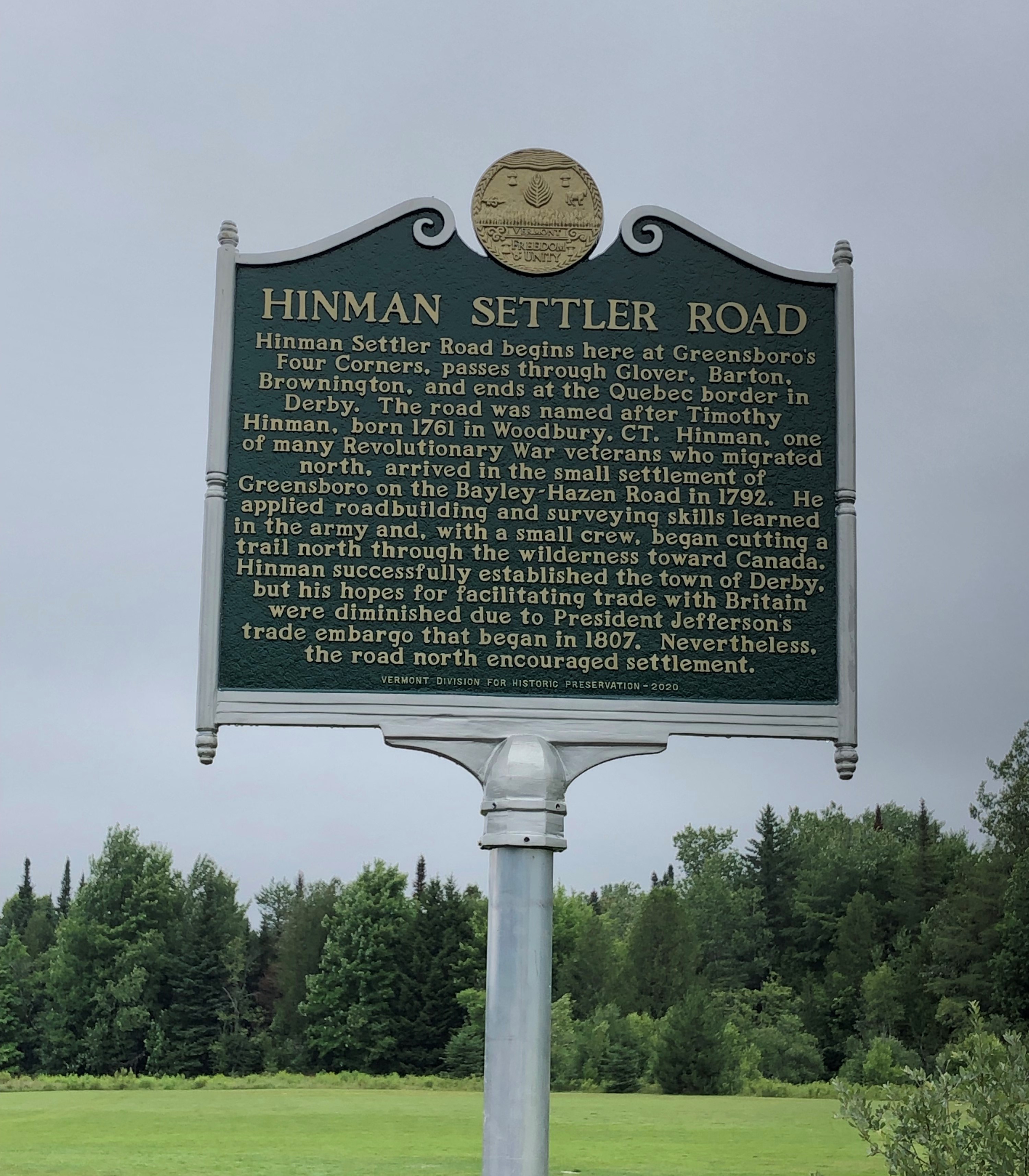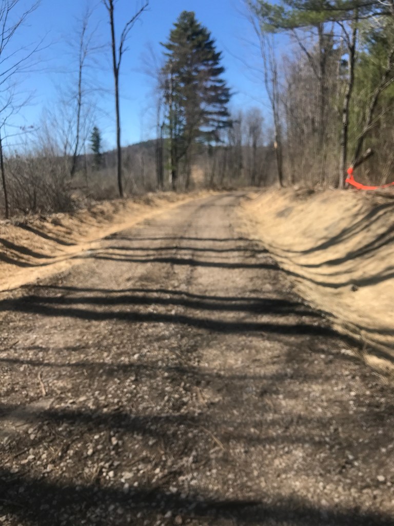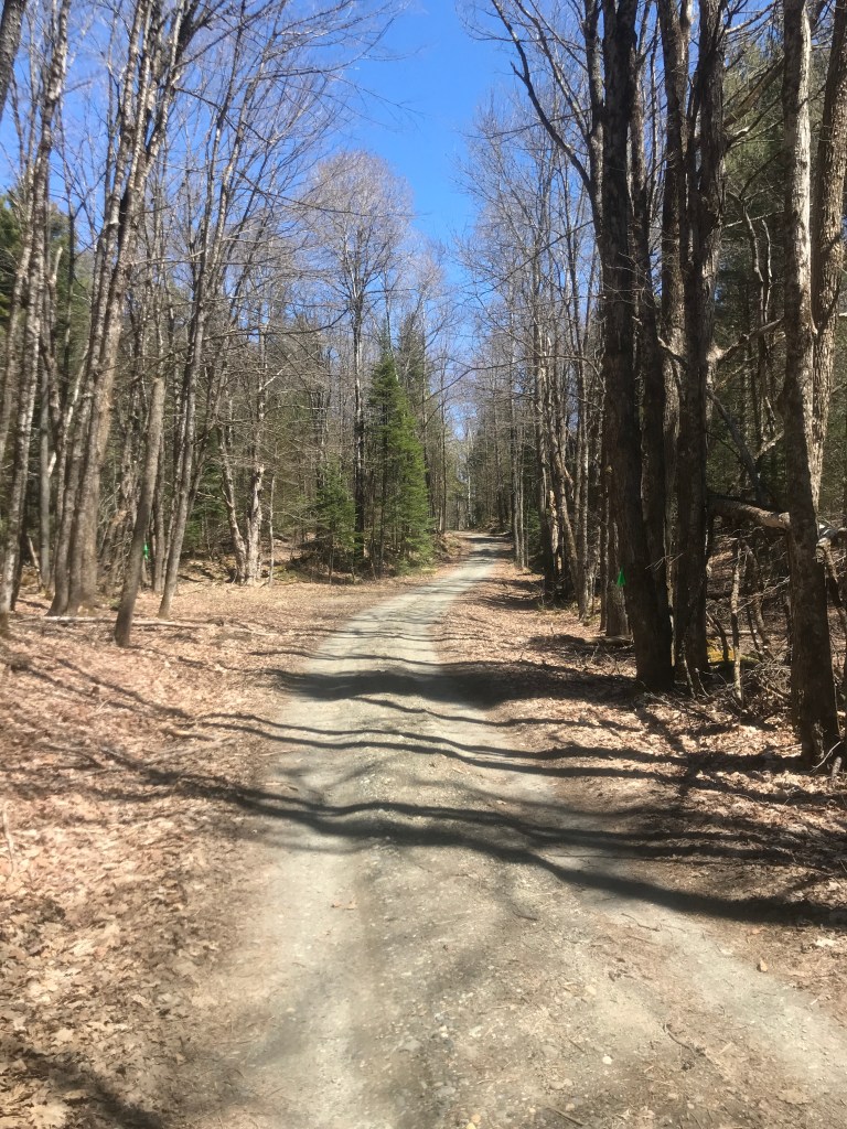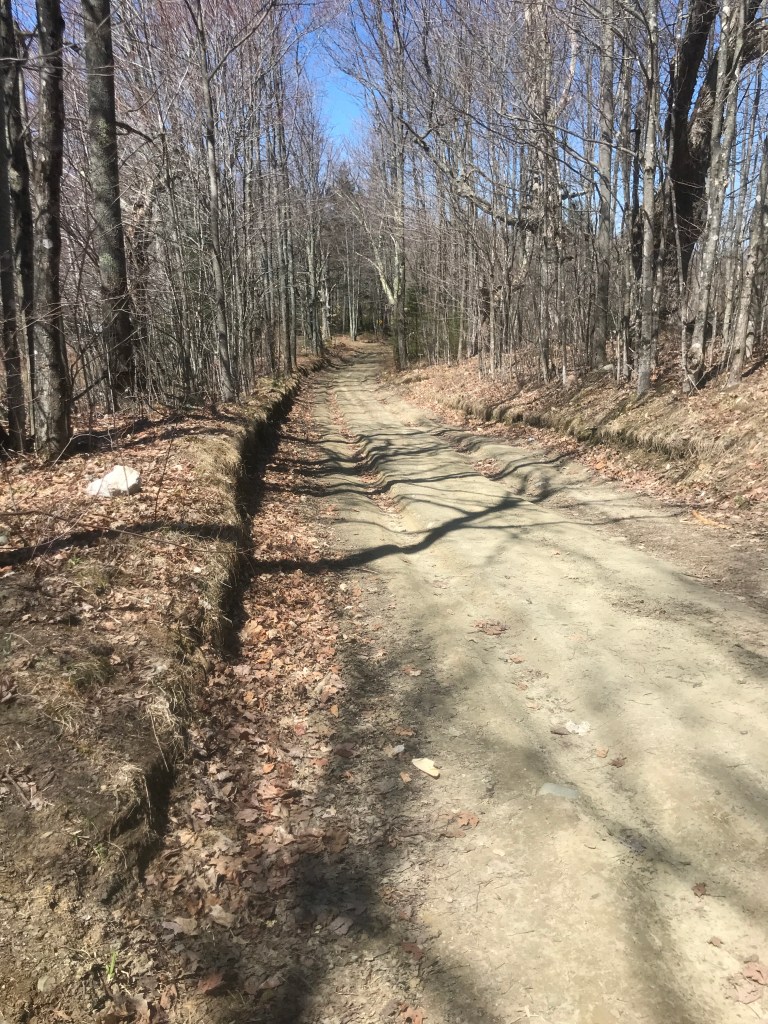I eventually made it up to Bridgman Hill Road and had views over to the snows of Mansfield. Reports from that day were of pretty solid coverage and great corn skiing. I headed north to work my way towards Caspian Lake and into the town of Greensboro. The area has a number of lovely class 3.5 roads and Cook Hill Road which took me over towards the lake was certainly one of them: generous double track, small rollers and generally trending down. I’ll need to come back to explore Edsall and Harrington Roads some other time. After taking in a view of the lake, I made my way to “The Four Corners” where the historic Hinman Settler Road began. Built in the early 1790s the road connected Greensboro with the Canadian border and led the the founding of Derby Vermont and increased development in the area.